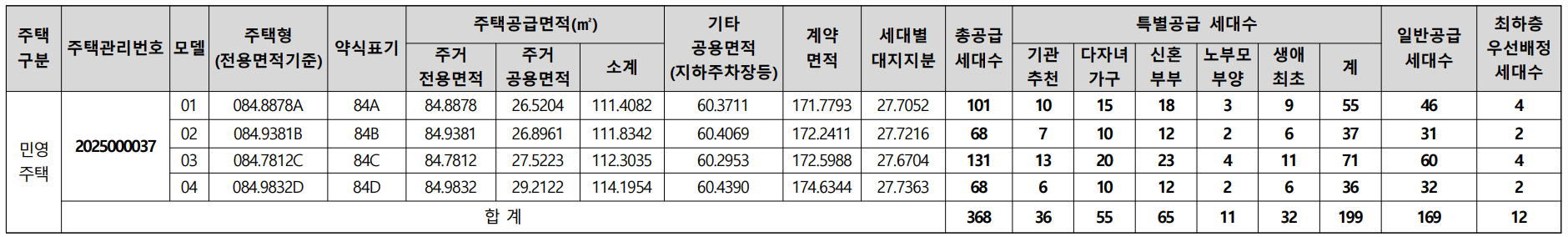 ▲84㎡A 101가구 ▲84㎡B 68가구 ▲84㎡C 131가구 ▲84㎡D 68가구