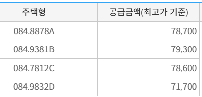 84㎡기준 6억원 후반~7억 후반, 주변 분양가 대비 낮음